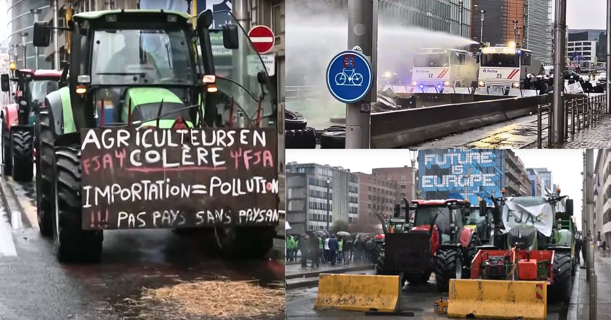 Bruseljska policija je sporočila, da je v Bruselj vdrlo 900 traktorjev, od katerih se je večina usmerila proti stavbi Evropskega sveta, kjer so se sestali ministri. V bližini mesta, kjer je policija polno opremljena za izgrede z vodnimi topovi branila sedež EU izza betonskih ovir in bodeče žice, se je po zraku valil dim. Kmetje so se spopadli s policijo, ta pa je aktivirala vodne topove